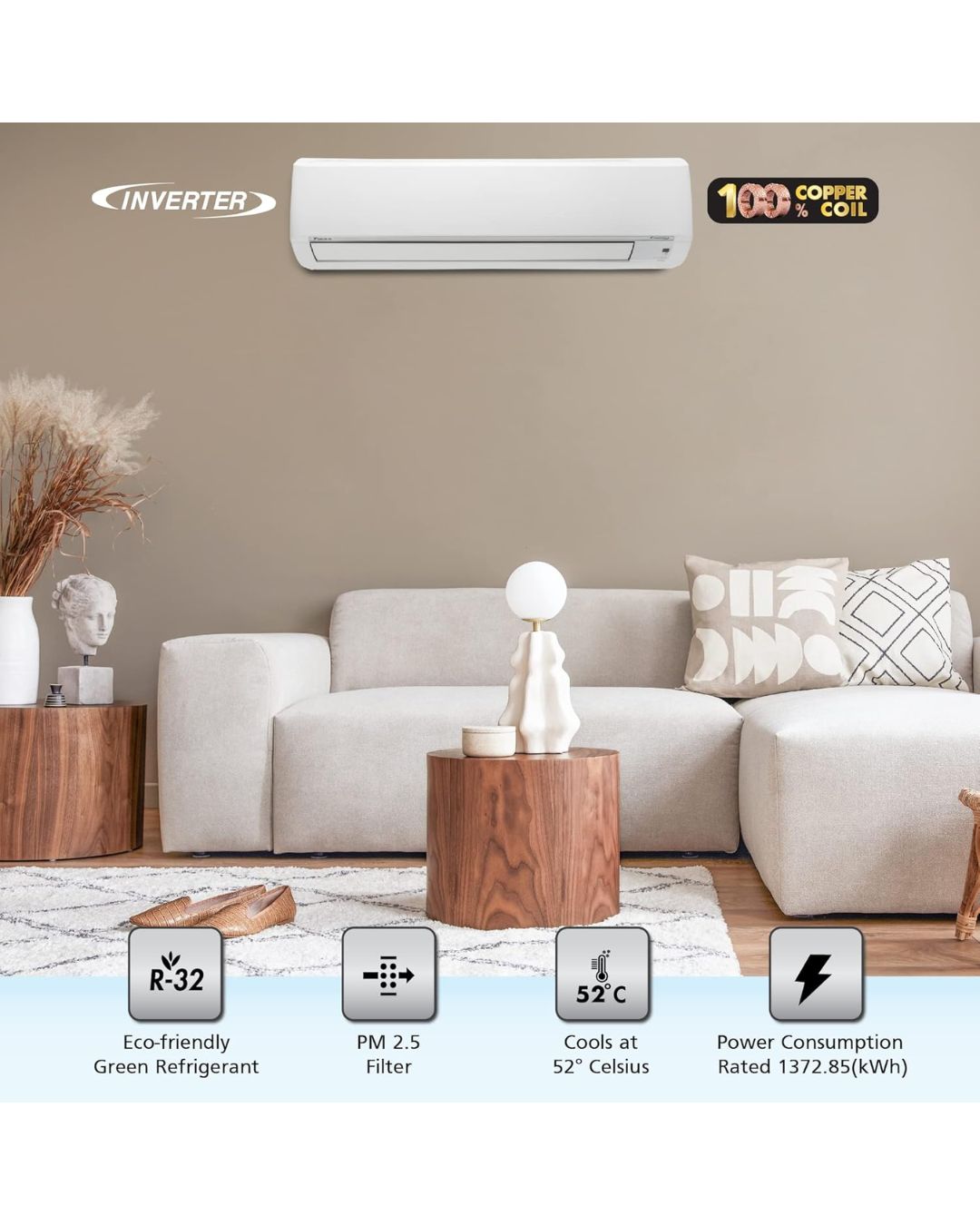 | Special Feature | 3D Airflow, Good sleep off timer, High Ambient Operation upto 52°C, PM 2.5 Filter, Self Diagnosis |