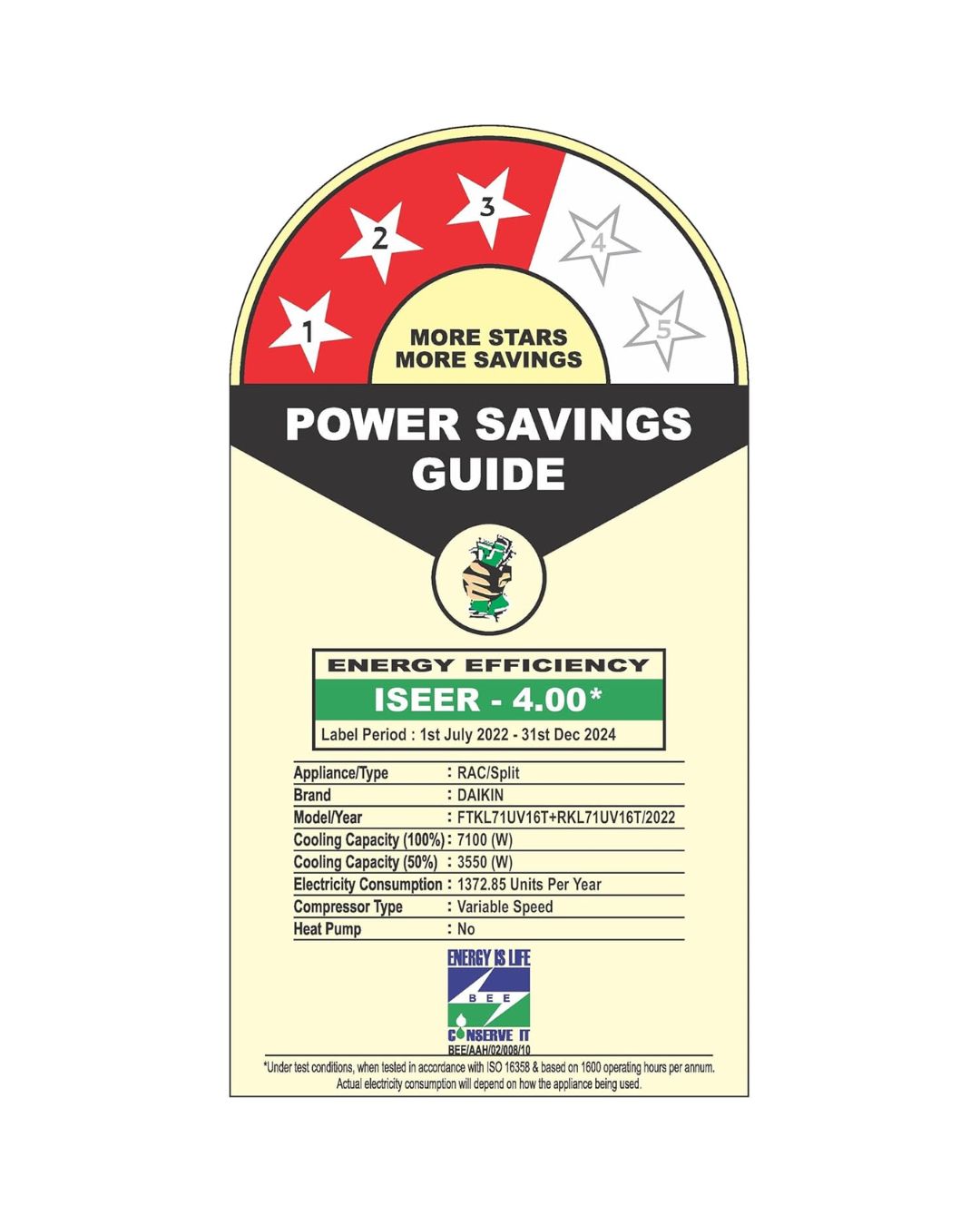 | Cooling Power | 7.1 Kilowatts |