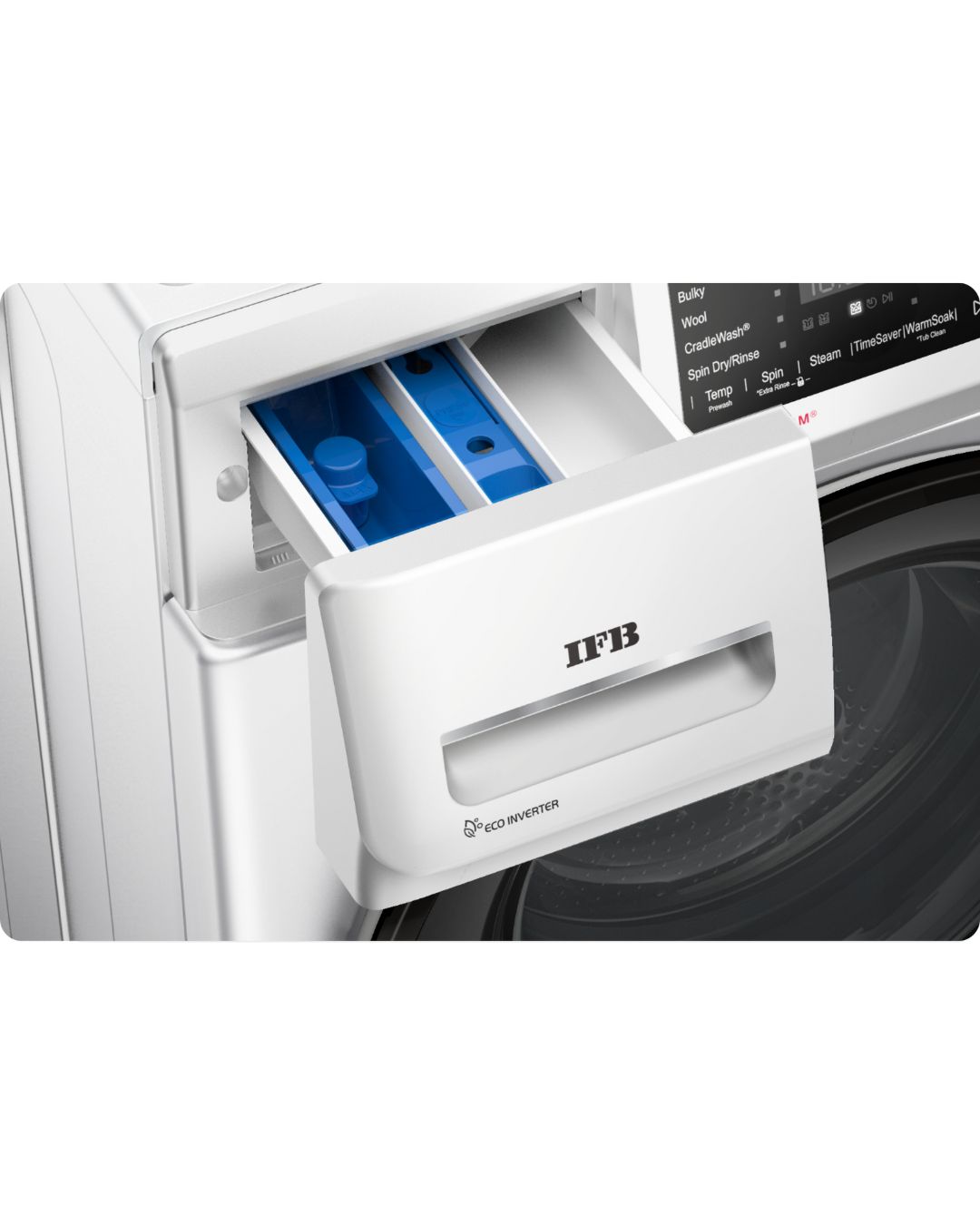 IFB DeepClean ® 8 kg Front Load Washing Machine with Eco Inverter Motor Consider upgrading a laundry appliance to another model, the IFB DeepClean® 8 kg Front Load Washing Machine with Eco Inverter Motor that is energy efficient and quiet while lasting longer. The DeepClean® Technology will clean tough stains while being gentle on holding quality. Aqua Energie is a water softening technology, and with multiple processes, all resulting in cleaning ability and water efficiency, a family of medium to large sizes will enjoy this washing machine.