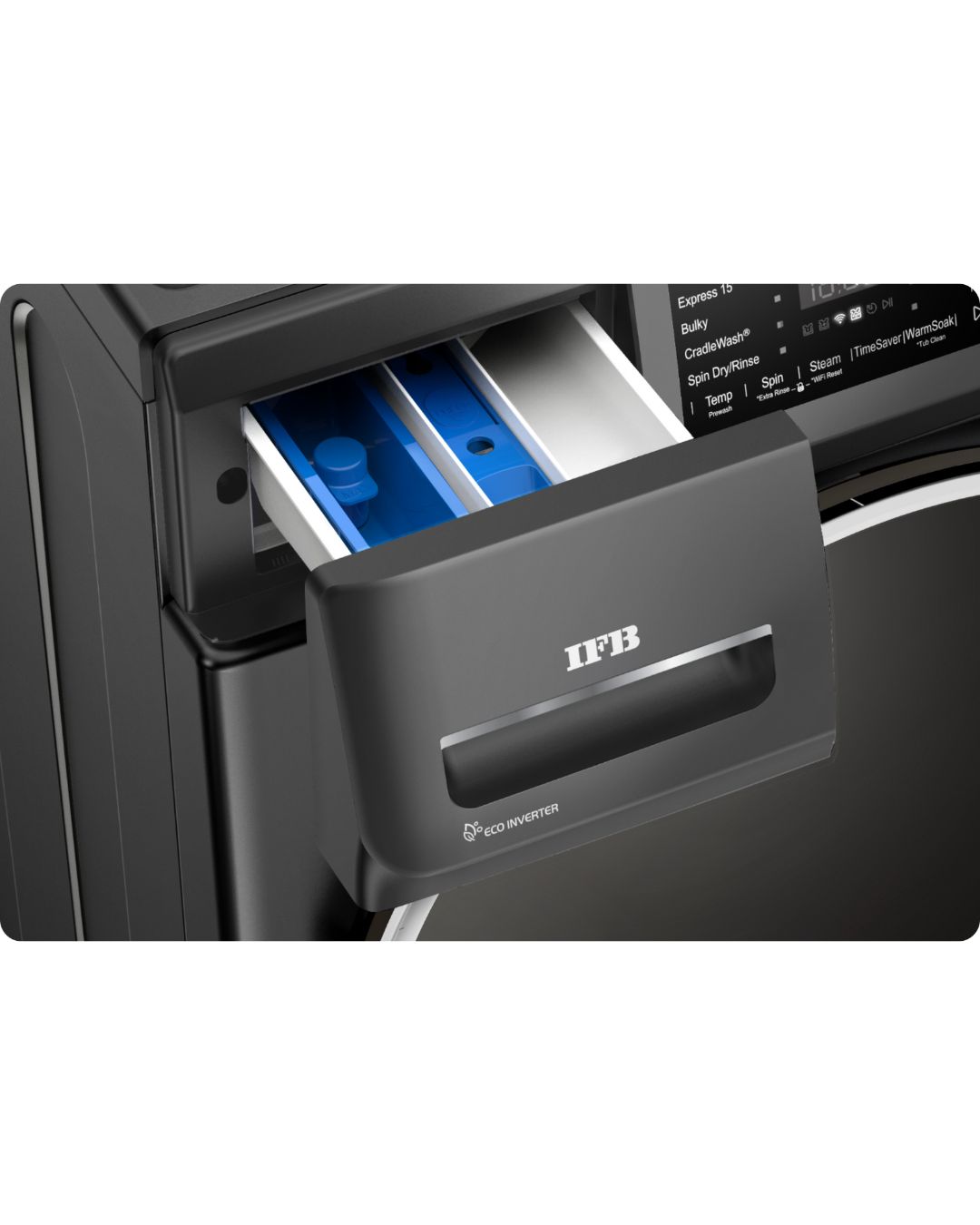 With the IFB DeepClean® 9 kg Front Load Washing Machine, you can achieve spotlessly clean and hygienic laundry. It features Steam Refresh technology, which conveniently and effectively removes wrinkles, bad odors, and bacteria from clothes while leaving the items free of dampness and fresh enough to wear. The Eco Inverter motor, 1400 RPM spin speed, and 9 Swirl Wash generate deep cleaning performance with extra care while saving water and energy. The IFB DeepClean® series brings innovation in the typical performance, efficiency, and added durability needed for families with busy lives.