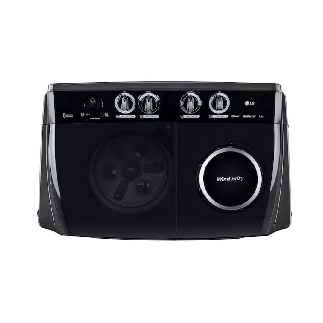LG 11.5Kg Semi Automatic Top Load Washing Machine, Roller Jet Pulsator + Soak, Full Black