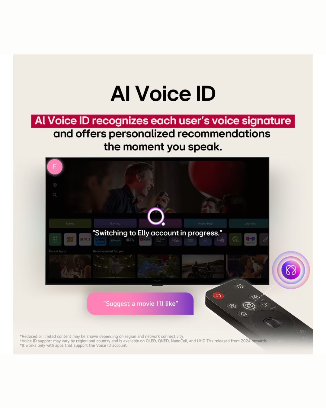 LG AI Voice ID recognizes each user’s unique voice signature and offers personalized recommendations the moment you speak.