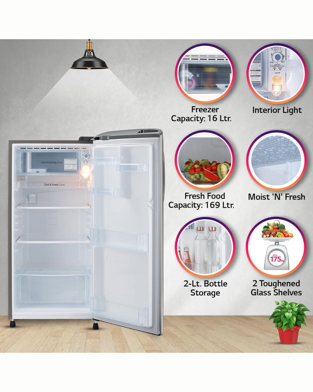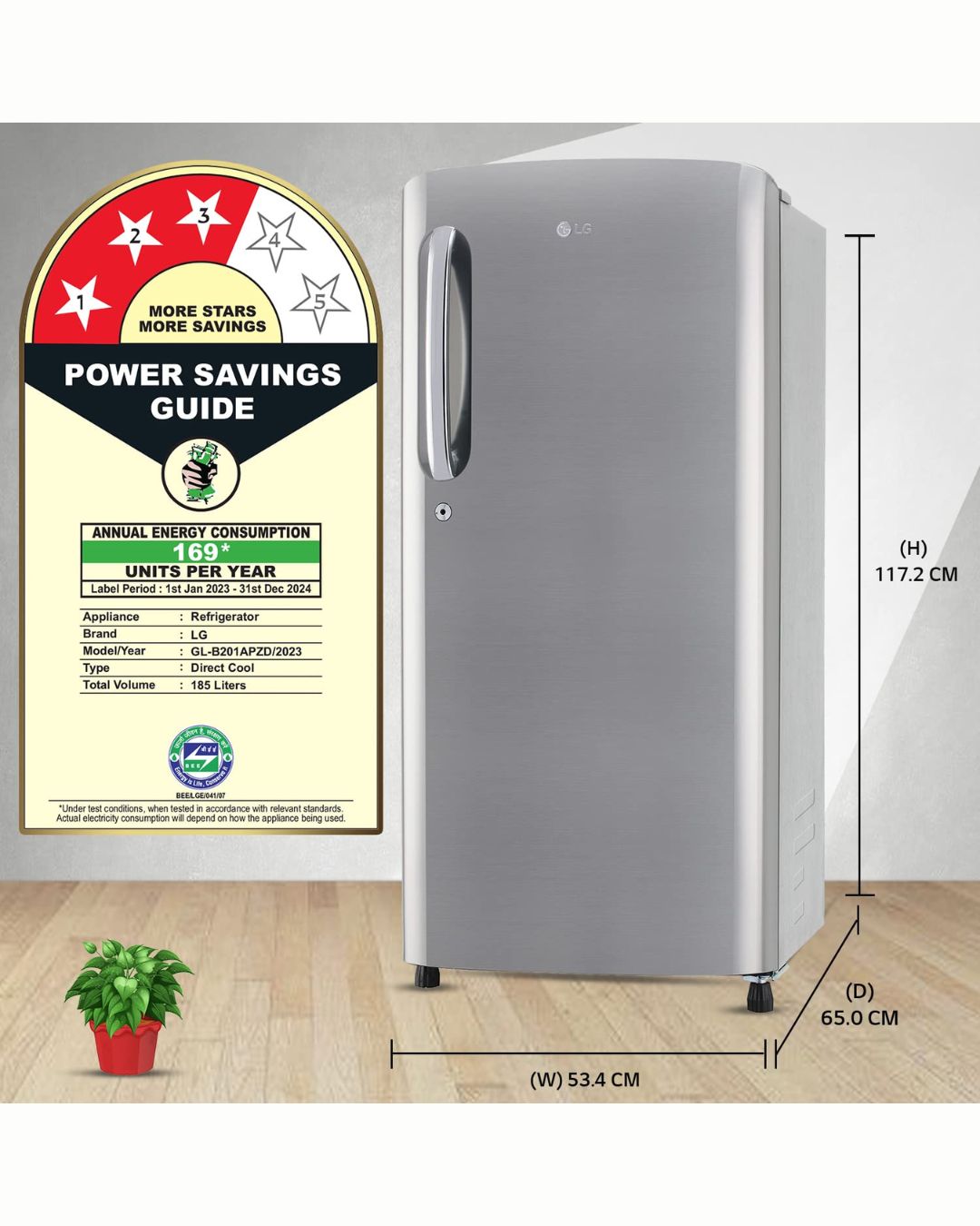 LG 185 L 3 Star Direct-Cool Single Door Refrigerator (GL-B201APZD, Shiny Steel, Fast Ice Making, Gross Volume- 190 L)