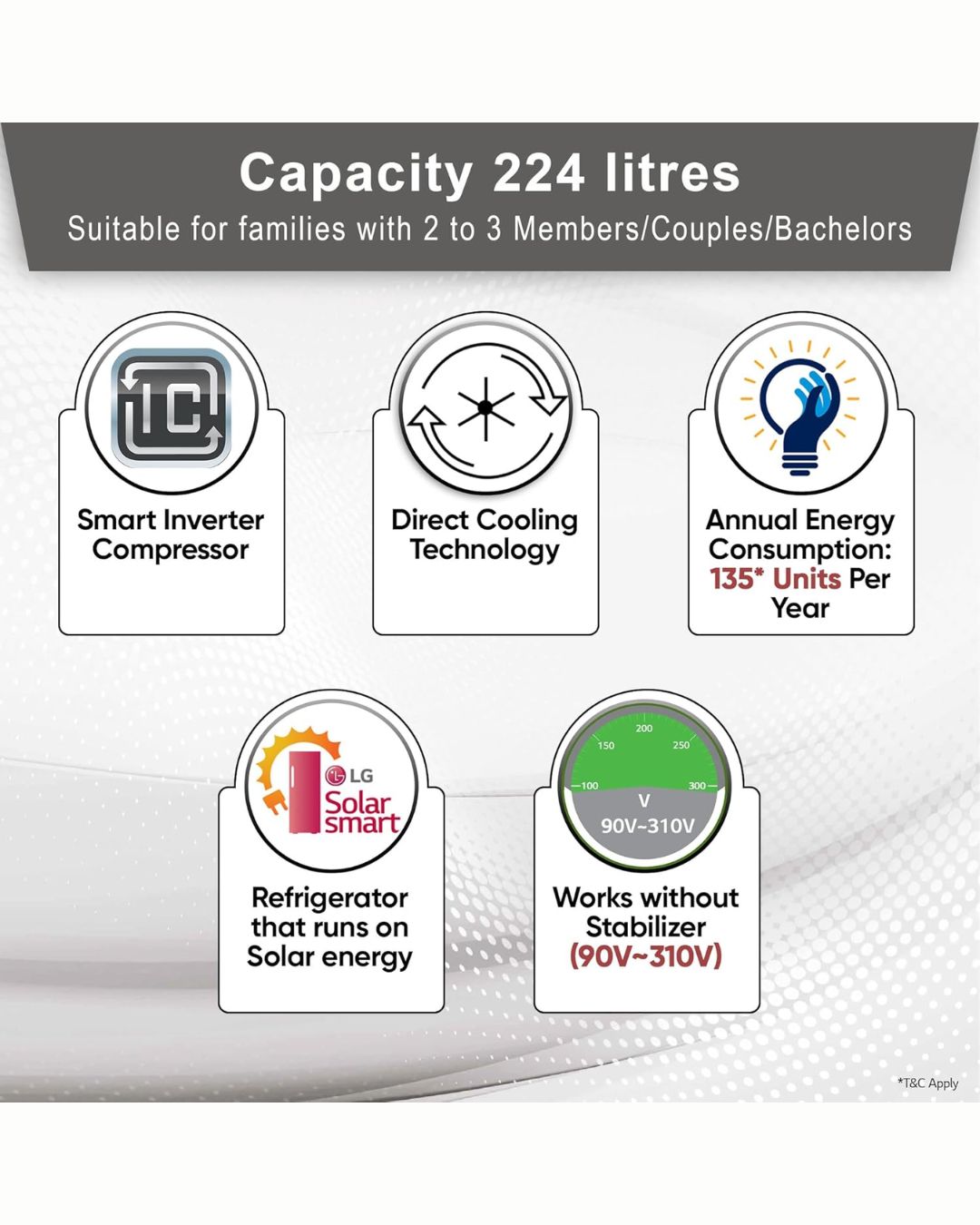 - Capacity 261 litres: Suitable for families with 2 to 3 members and bachelors