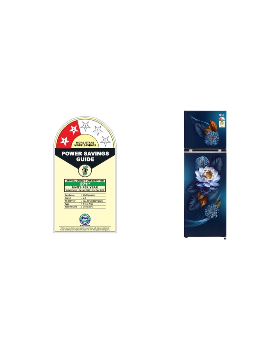 LG 272 L 2 Star Frost-Free Double Door Refrigerator (Blue Water Lily) – Smart Inverter Compressor, Convertible style. This LG 272 L Double Door Refrigerator is a stylish and high-performing addition to your kitchen. Powered by Smart Inverter Compressor for energy-efficient, quiet and long-lasting performance. Convertible style converts easily between fridges or freezer modes for the ultimate flexibly. Frost-Free technology means no ice build-up while the Multi Air Flow system keeps your refrigerator at an even cooling temperature. Moist Balance Crisper keeps your favourite fruit and vegetables fresher for longer. Durable, toughened glass shelves add the ability to hold heavy containers. Finished in a stunning Blue Water Lily design, this refrigerator will add a beautiful touch to your home – perfect for small to medium-sized families.