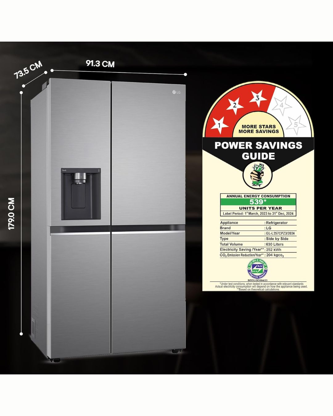 • Energy Rating: 3 Star Energy Efficiency | Annual energy consumption: 539* Units Per Year (Please refer BEE label for more information)