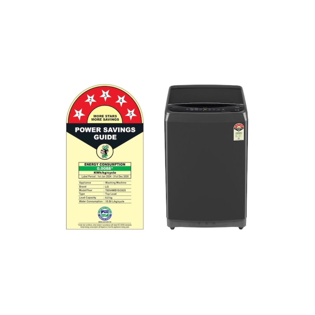 The LG 8Kg Top Load Washing Machine features a modern design for powerful washing that is hygienic and convenient. With the In-Built Heater, you can ensure efficient removal of stains and cleaning of germs for everyday fabrics and delicate clothes. Smart Inverter Motor works with optimised energy efficiency and low operational noise. The finish is Middle Black provides a sleek premium look to your home.3. This washing machine has 8