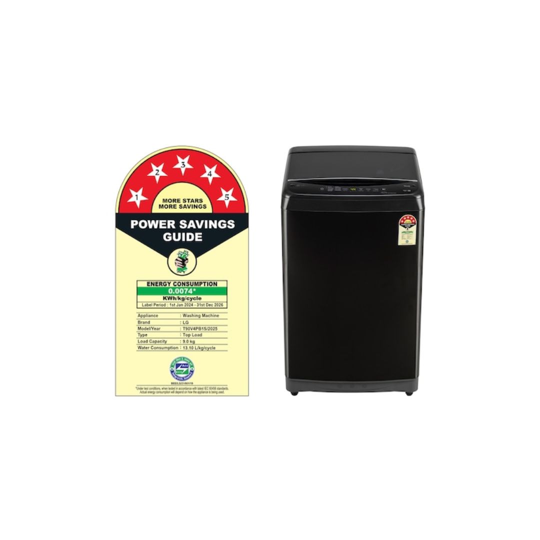 LG 9Kg Top Load Washing Machine, Inbuilt Heater, Platinum Black