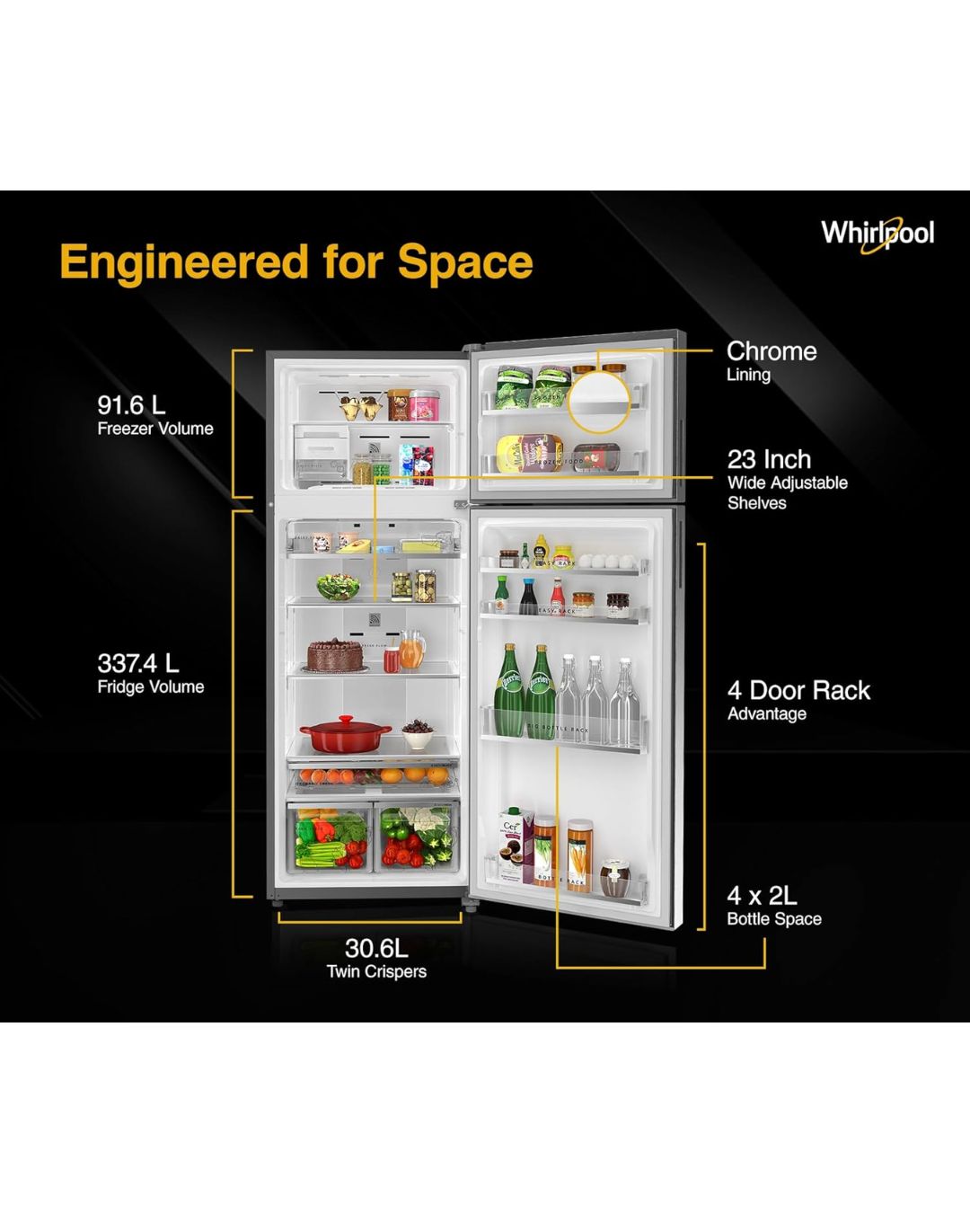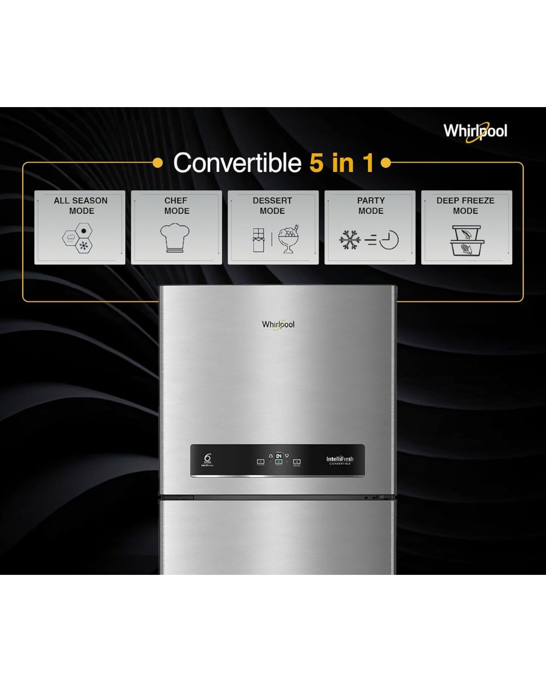 Transform your refrigeration experience with Whirlpool’s powerful and intelligent cooling that goes beyond standard refrigeration, with Adaptive Intelligence technology, the refrigerator reacts to load, weather, and usage patterns to provide optimal cooling and freshness. Convertible Freezer, together with the Inverter Compressor for energy-efficient, only cooling, silent operation. Plus, Frost Free functionality, toughened glass shelving durability and a sleek Alpha Steel finish makes it perfect for larger families – the ultimate balance of style, space and smart technology functionality.