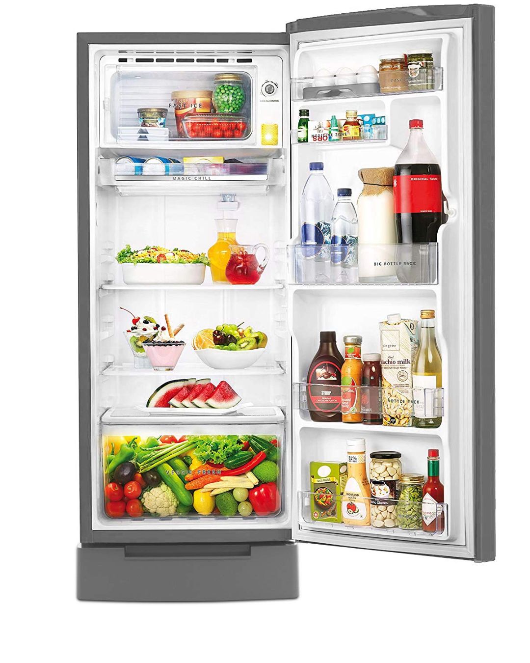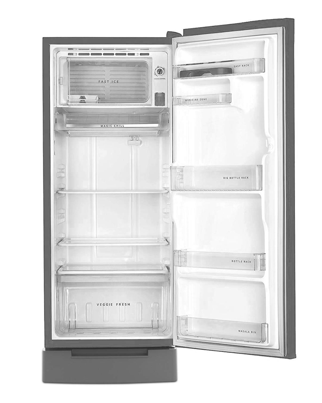Enhance your kitchen with the Whirlpool Icemagic Pro 207 L 3 Star Single Door Refrigerator. This refrigerator has an advanced Insulated Capillary Technology that helps to cool food faster and keep it fresh for a longer amount of time. The toughened glass shelves are (long lasting) and (safe) to store food. Additionally, the stabiliser-free operation protects it from voltage fluctuactions. And with its modern Aluminum Steel exterior and (energy-efficient) 3 Star rating, this refrigerator is the perfect mix of style, (efficient and safe) performance, (with the added) peace of mind that it will last for (a long amount of time). It’s ideal for small to medium households.